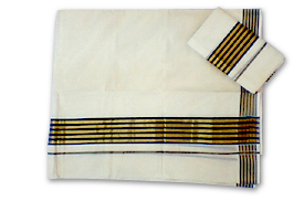 KERALA SPECIAL : Double Set Mundu with Kasavu and blue kara